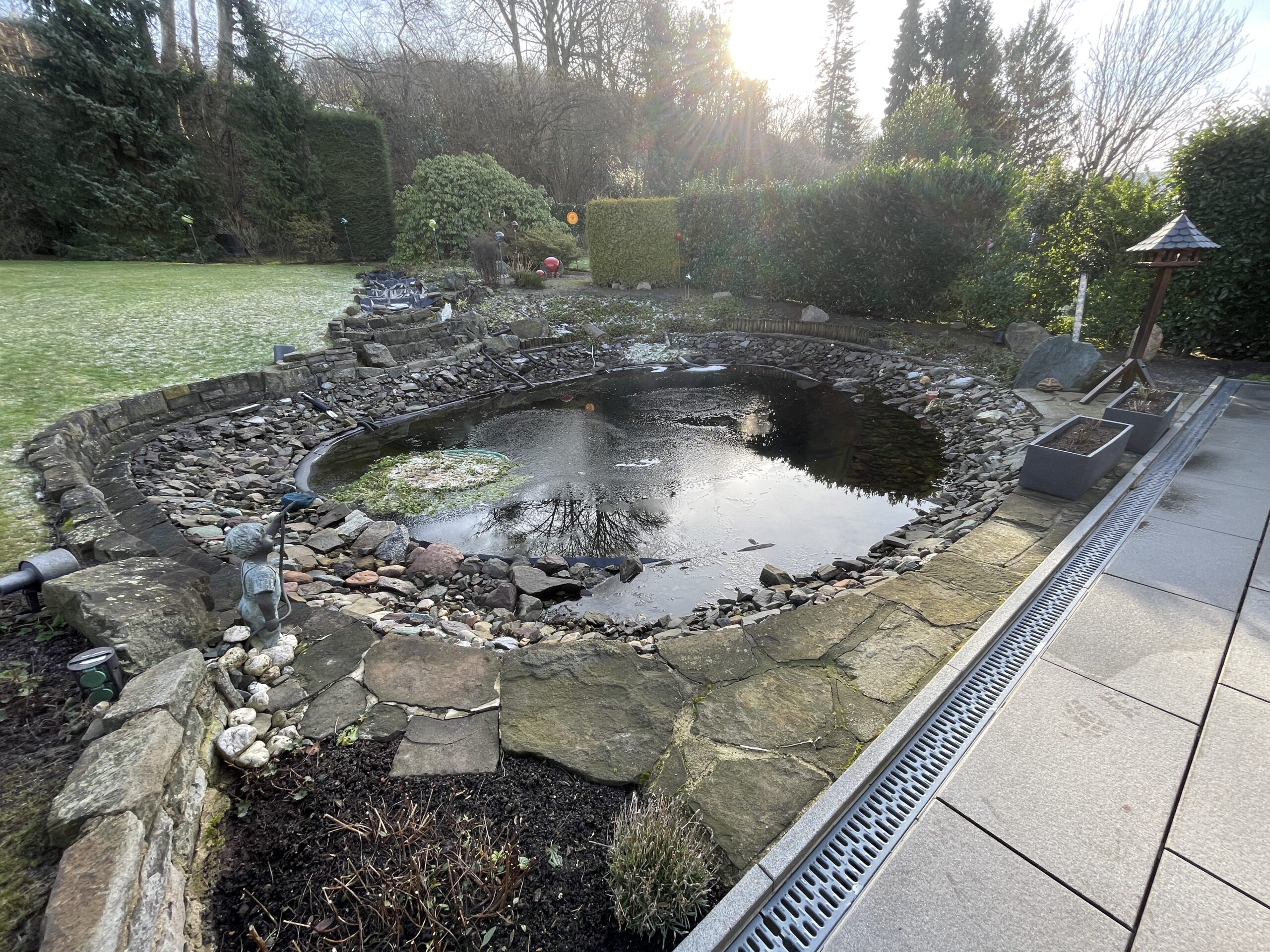 Wasser ist ein lebendiges Element. Deshalb lassen wir Sie nach dem Bau nicht allein. Ein Schwimmteich braucht über die Jahreszeiten hinweg ein wenig Aufmerksamkeit – etwa den Rückschnitt der Wasserpflanzen im Herbst oder die Kontrolle der Wasserwerte im Frühjahr. Wir stehen Ihnen hier zur Seite, damit das biologische Gleichgewicht stabil bleibt. Ein gut angelegter Bachlauf oder Teich steigert den Wert Ihrer Immobilie massiv, aber viel wichtiger: Er verändert die Lebensqualität in Ihrem Zuhause. Das sanfte Plätschern und das klare Wasser sind der beste Kontrast zum stressigen Alltag.