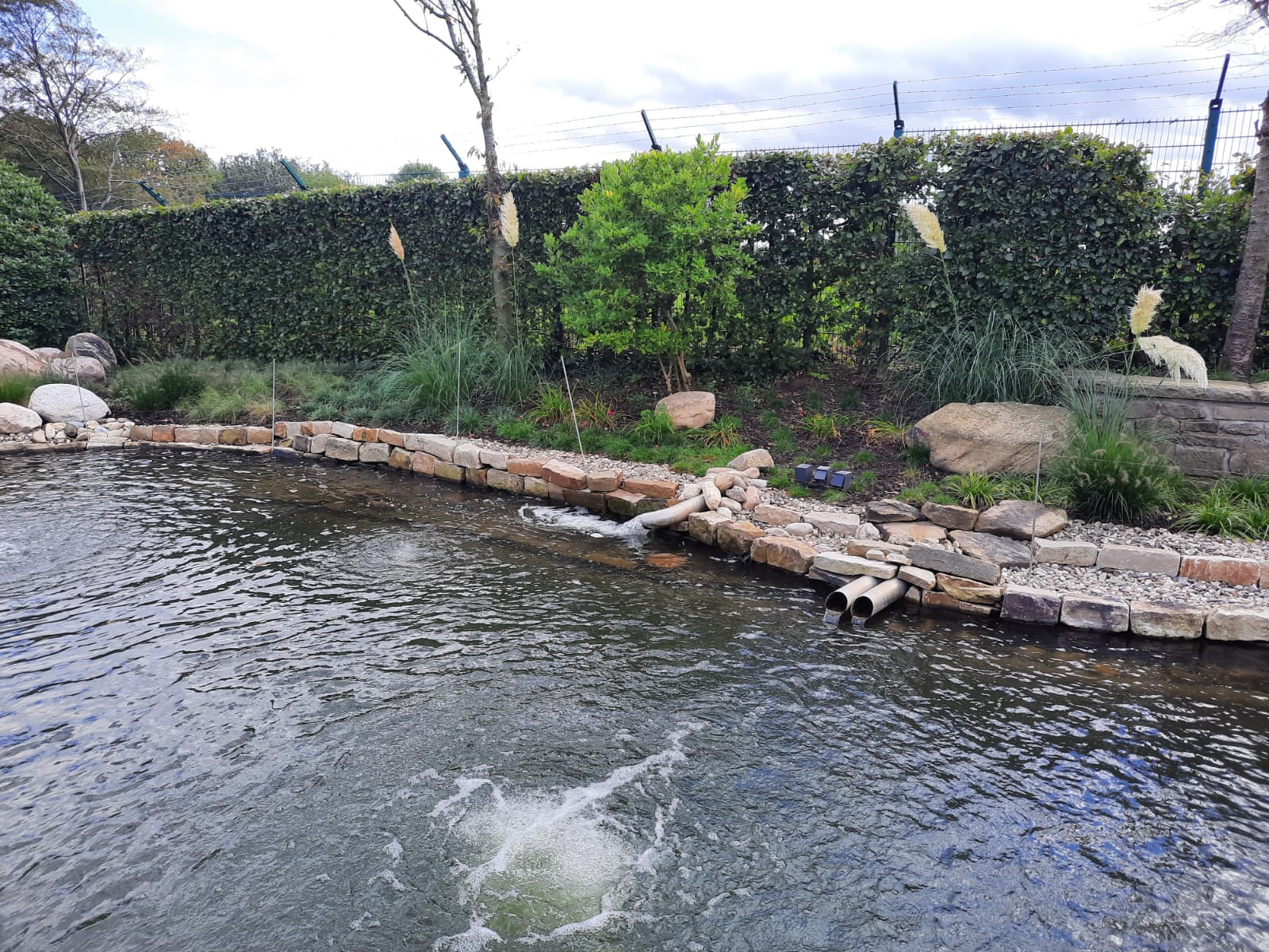 Ein guter Schwimmteich fängt nicht mit dem Bagger an, sondern mit der Beobachtung. Wo fällt das Laub hin? Wie viele Sonnenstunden hat die Fläche? Wir planen die Wasserflächen so, dass der Nährstoffeintrag von außen minimiert wird. Dabei trennen wir den Schwimmbereich baulich von der Regenerationszone, damit Sie beim Bahnenziehen nicht zwischen Schilf und Seerosen landen, aber trotzdem von der Reinigungskraft der Natur profitieren. Ein Bachlauf kann dabei als zusätzlicher Sauerstoffspender dienen. Das Wasser plätschert über natürliche Gesteinsstufen, reichert sich mit Sauerstoff an und fließt gereinigt zurück in das Hauptbecken. Das ist nicht nur gut für die Wasserqualität, sondern auch ein akustisches Highlight für Ihre Terrasse.