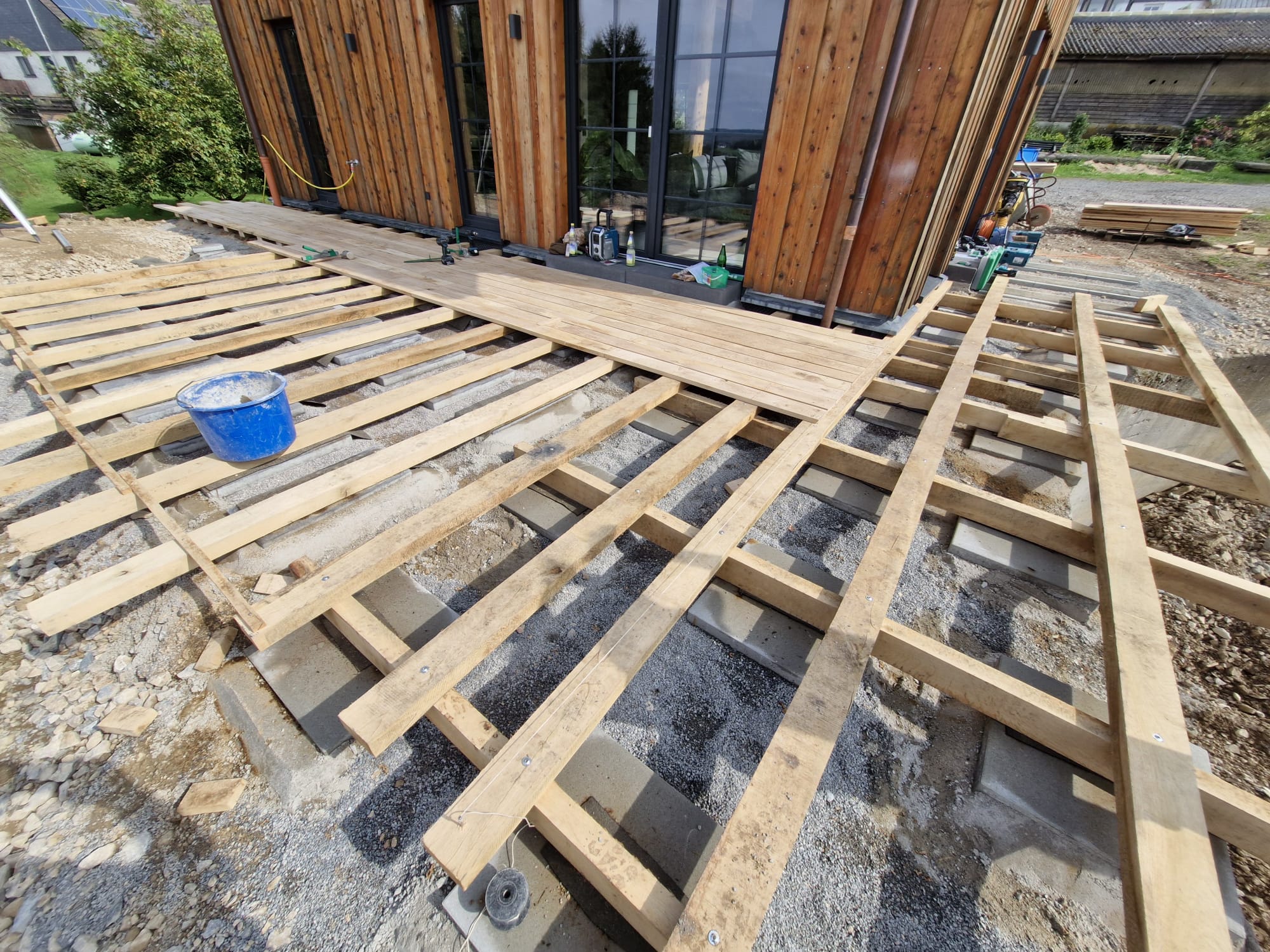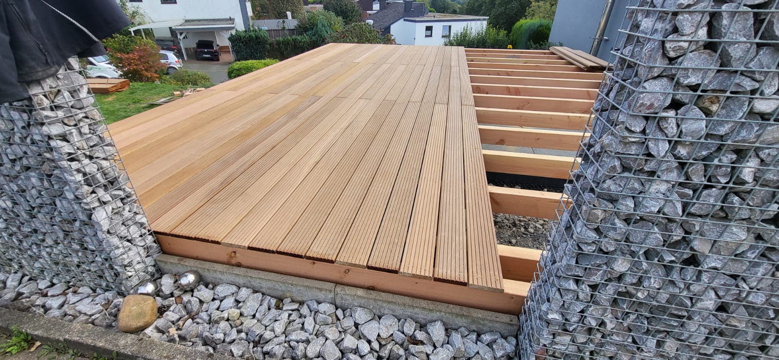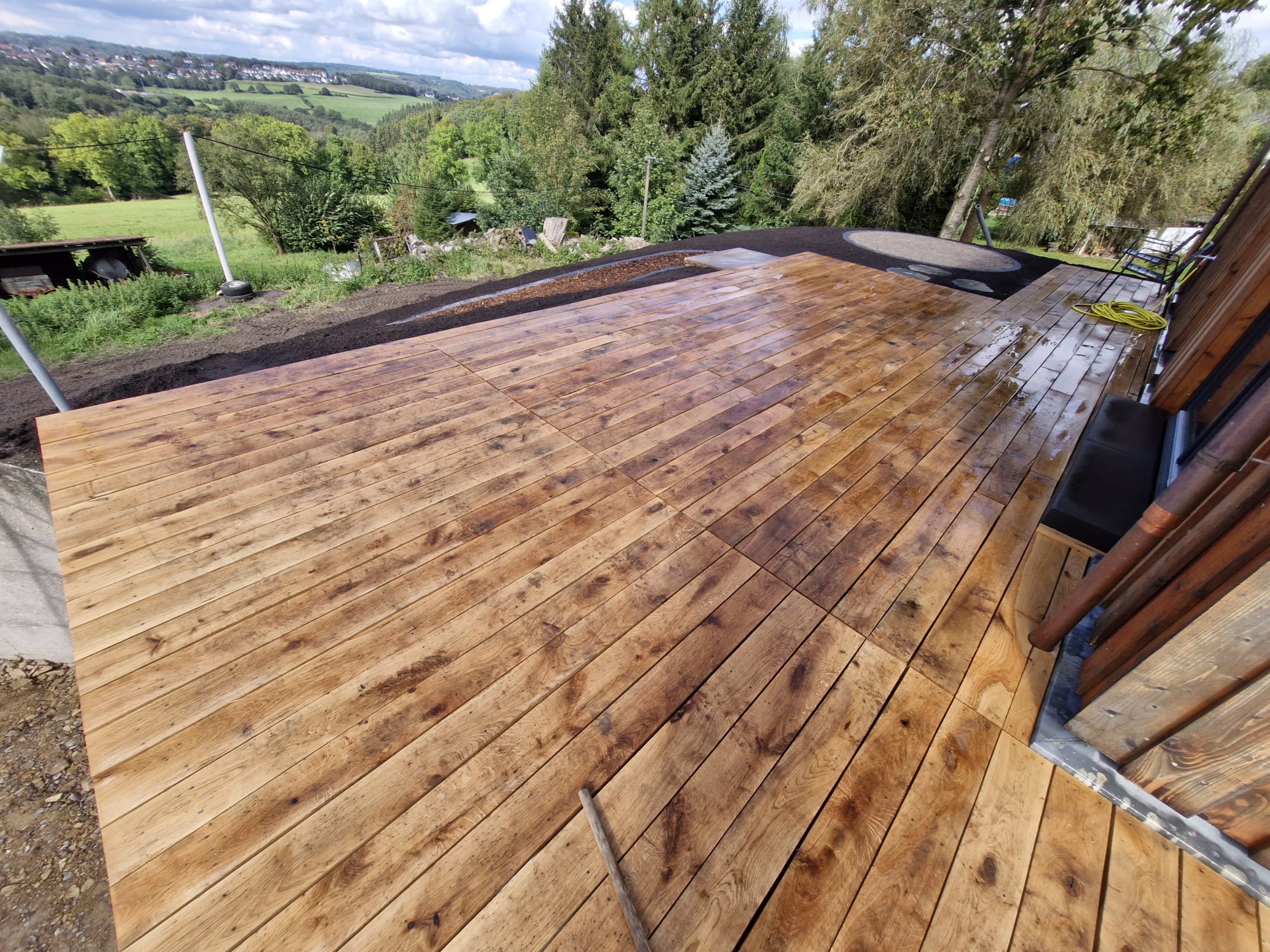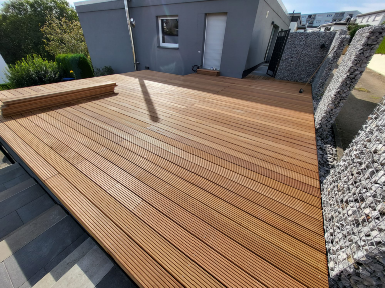 Holzterrassen haben einen unschlagbaren Charme und heizen sich im Hochsommer weniger auf als Stein. Aber Holz arbeitet. Deshalb achten wir bei der Voigt GmbH extrem auf den konstruktiven Holzschutz. Das bedeutet: Das Holz darf nie direkt im Dreck oder im Wasser liegen. Wir bauen Unterkonstruktionen aus Aluminium oder Hartholz auf verstellbaren Stelzlagern, damit die Luft zirkulieren kann und das Holz nach einem Regen schnell wieder abtrocknet. Wer die Holzoptik will, aber keine Lust auf Ölen und Streichen hat, für den sind WPC-Dielen (Holz-Kunststoff-Gemisch) eine moderne, wartungsfreie Alternative.